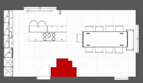 Da der komplette Raum (Küche und Esszimmer) ziemlich groß ist (insgesamt 4,25 breit und 8,43 lang) möchte ich den Platz in der Küche für eine Kochhalbinsel nutzen und möglichst keine ewig große freie "Tanzfläche" zurückbehalten;-).