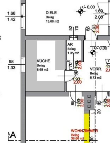 .) Die Wand in gelb ist schon weg - das ist Wohn/Esszimmer - brauch daher in der Küche keine Sitzgelegenheit
