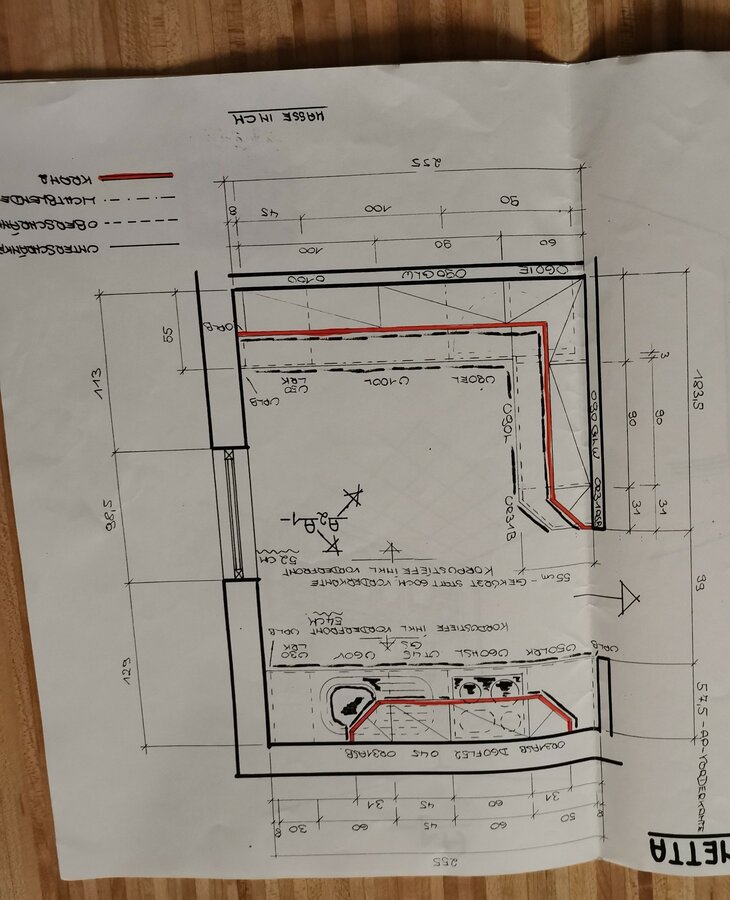 .) den Plan vom früheren Küchenstudio hab ich gedreht, passt jetzt mit dem Grundrissplan des EGs zusammen. Wie man auf dem Küchenstudioplan sieht, sind die Korpi nur ca. 55 cm tief, gerade bei der Tür geht eigentlich nicht mehr. Die Arbeitsfläche ist da schon "in der Tür". Diese könnte man sicher verschieben um zumindest 10- bis 15cm - ist halt dann schon ein gröberer Umbau, da ich handwerklich überhaupt nicht begabt bin...