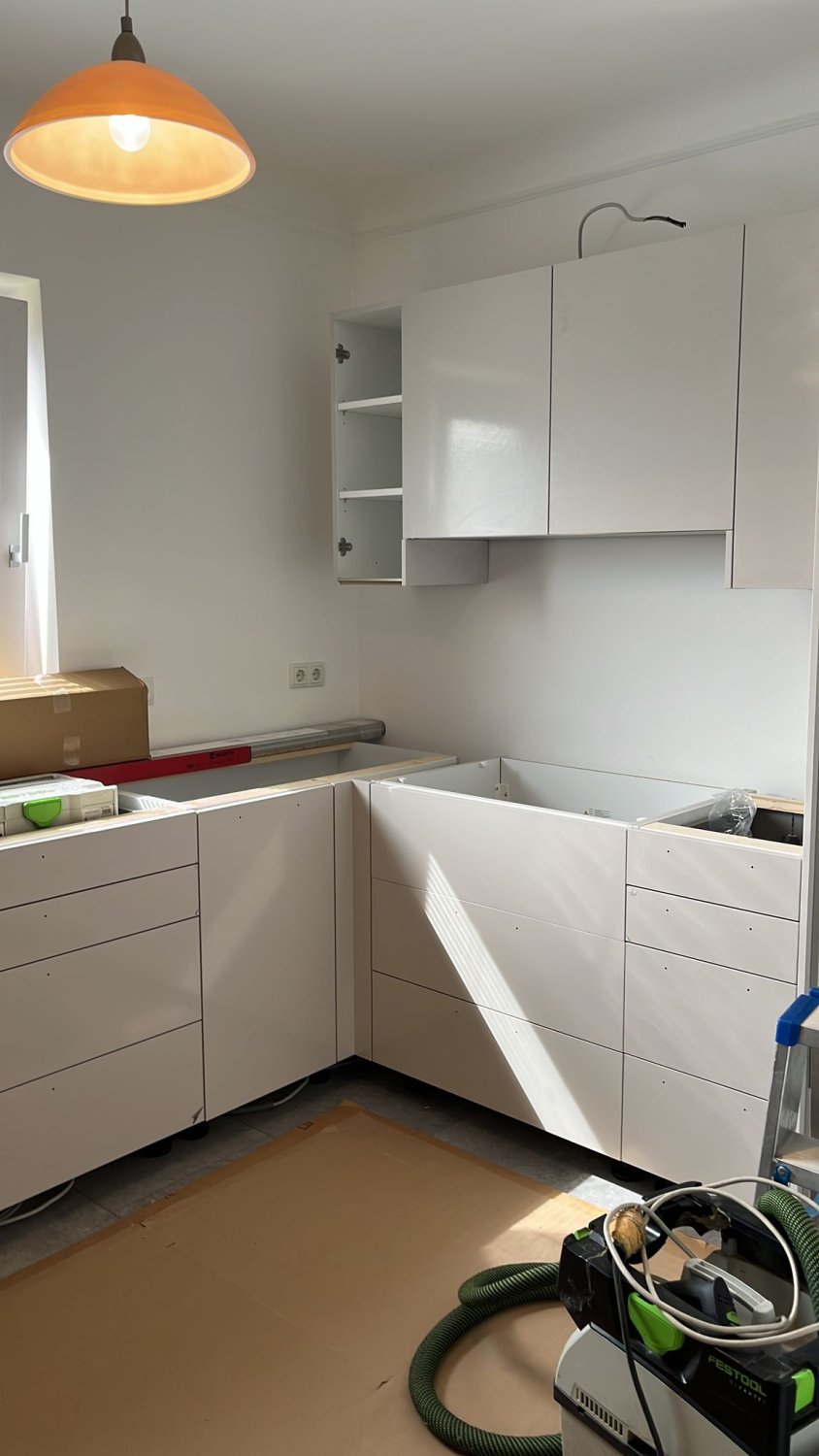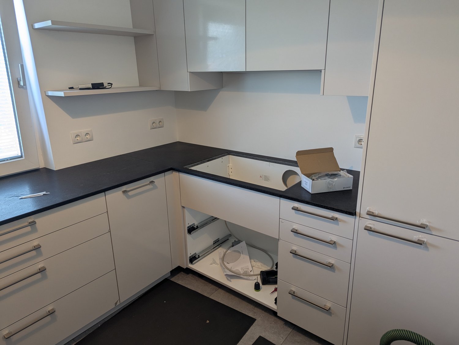 Und fertig, alles funktioniert. Sobald die Sesselleisten drauf sind und die Rückwand, mach ich nochmal bessere Fotos bei besserem Licht und stell sie unter fertige Küche ein.