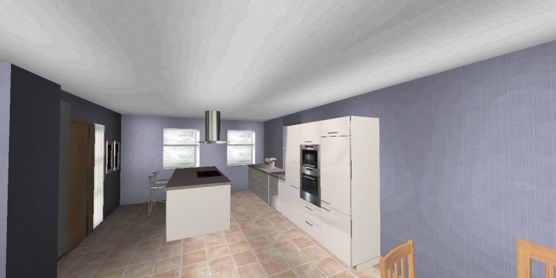 vielen Dank für deine Stellprobe und deinen Vorschlag, aus diesem Blickwinkel haben wir es noch gar nicht betrachtet. Aber wenn wir die Küche als Eingangsbereich nutzen ist der Kochblock im Vordergrund ehr ein Hinderniss. Ich denke man empfindet den Block ehr als Wand und nicht als großzügigen Eingang.