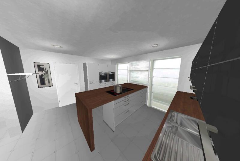 Habe jetzt wieder über der Planung gesessen und die Arbeitshöhe der Mittelinsel auf 86 cm gebracht. Bin mir aber nach wie vor nicht sicher, wie das in echt aussieht, da ja rechts die Arbeitshöhe bei 91 cm liegt. Meine Größe ist 165 cm. Was meint Ihr, würde da auch eine Höhe von 91 cm funktionieren?? Diese Höhe wäre - glaube ich - auch besser für die Sitzlösung.