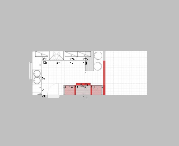 Ich habe mal noch ein bisschen rumgestellt ... mit hochgebauter Spüma. Ich würde allerdings den Tresen wohl weglassen.