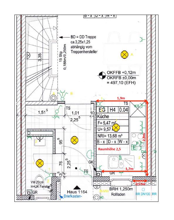 Auch wollen wir die Abluft vom Dunstabzug nach Außen führen.