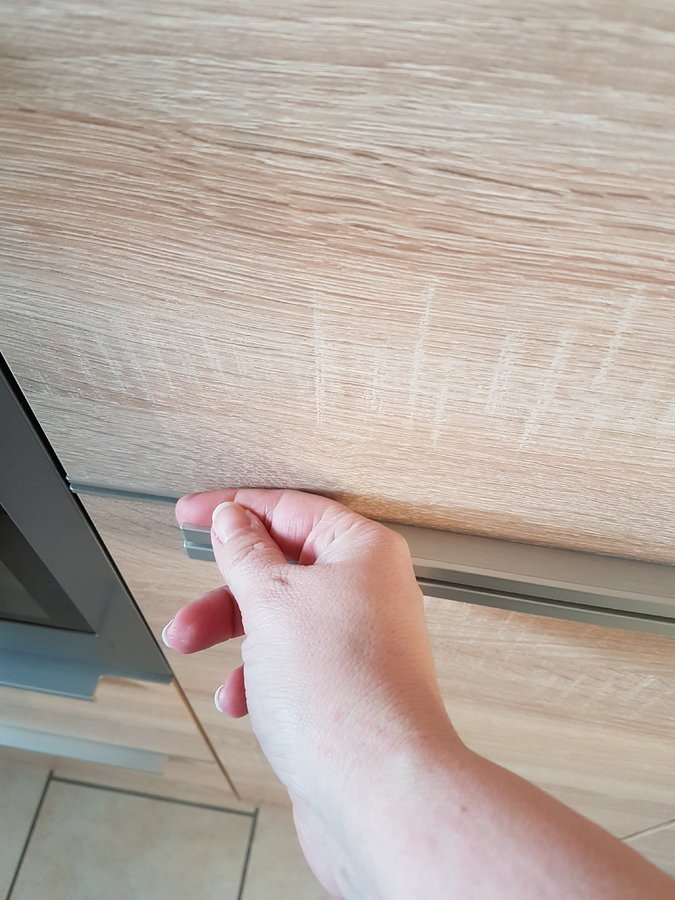 Oh je, da hoffe ich, euch geht es nicht wie uns, dass deine Frau an den Stellen, an denen sie an den Griffen mit den Fingern an die Fronten kommt, die Oberfläche auf Dauer mit den Fingernägeln verkratzt. :(
