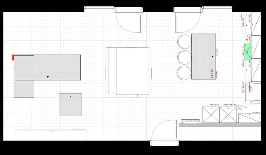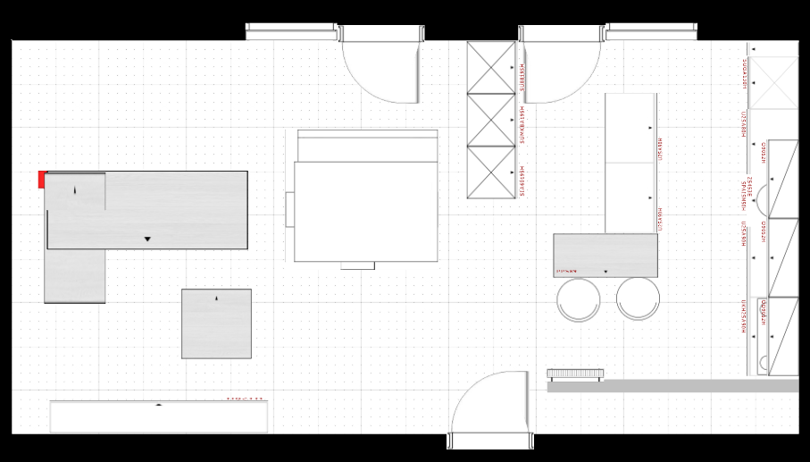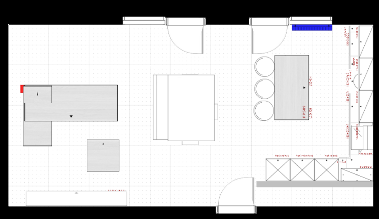 Wie könnten wir Tisch + Couch stellen. Wenn wir die Hochschränke zw. die beiden Balkontüren verschieben, geht relativ viel Platz für den Tisch verloren.