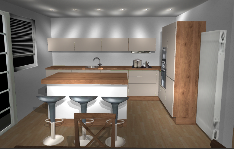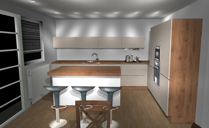 Bei einer ersten Planung im Küchenstudio wurde uns lust- und motivationslos eine Küche (einzeilig) an der Planrechten Wand geplant.