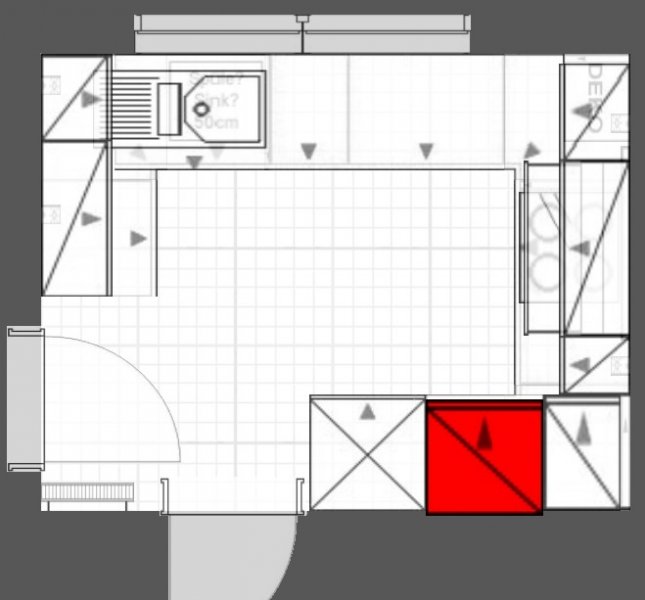 Als Kochfeld haben wir mal ein 80er eingezeichnet. Das scheint uns mehr Flexibilität zu bieten als ein 60er-Feld. Welche Größe würdet Ihr denn empfehlen (sogar 90 cm)? Gäbe es denn Probleme beim Einbau, da das Feld ja schon ein wenig in die tote Ecke hineinragt. Oder sollten wir es linksbündig im 100er Schrank bleiben?