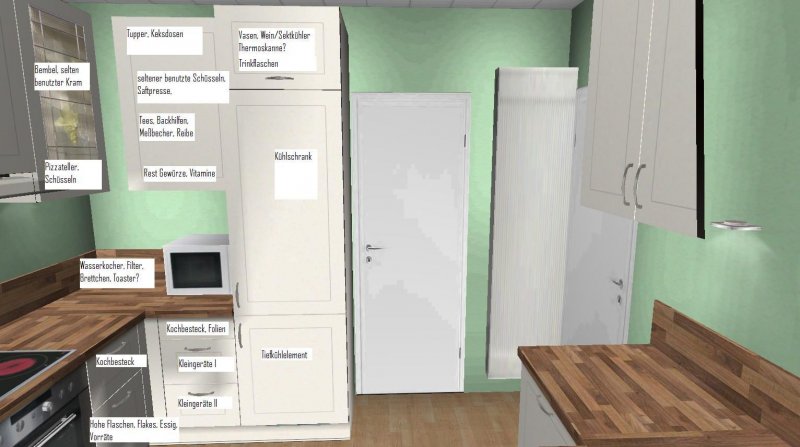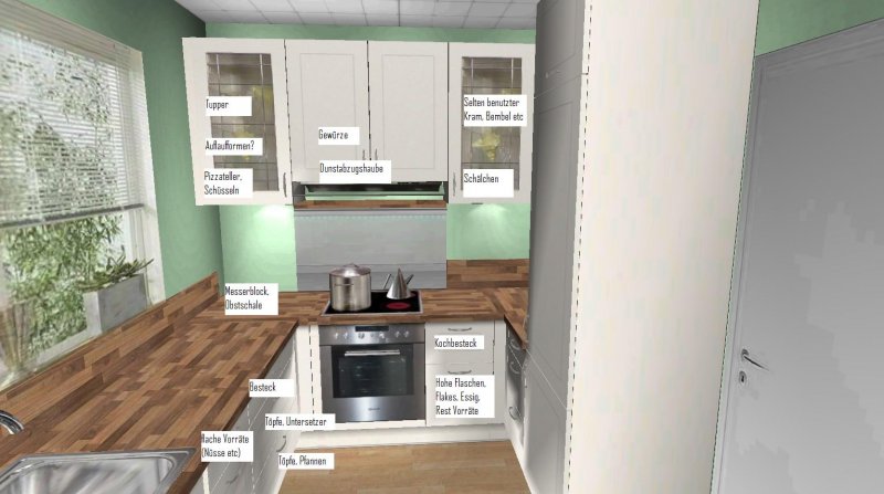 Welche Anordnung an der Fensterseite seht Ihr eigentlich als sinnvoller an? a) Spüle - Auszugsschrank - Ofen oder b) Spüle - Ofen - Auszugsschrank? a) hätte den Vorteil, dass sich dann das Kochfeld als Ablage für Heißes aus dem Ofen anbietet, bei b) käme man von allen Seiten an den Ofen heran.