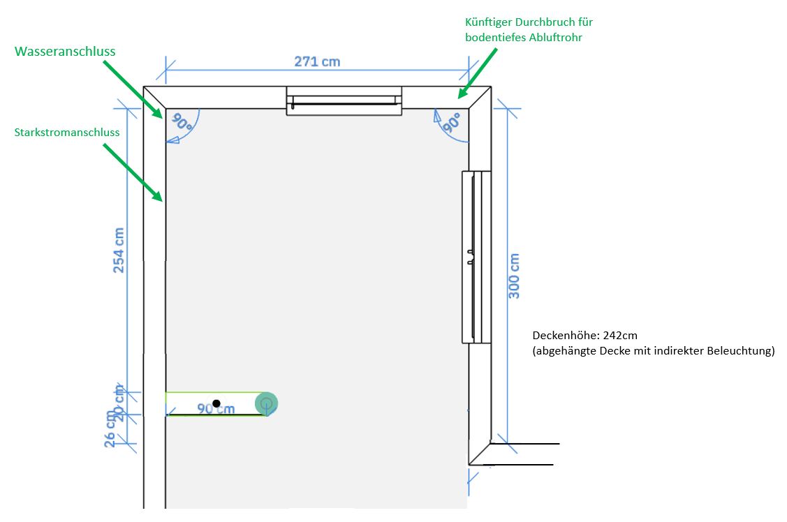 Raumhöhe in cm: 242 (abgehängte Decke mit indirekter Beleuchtung)