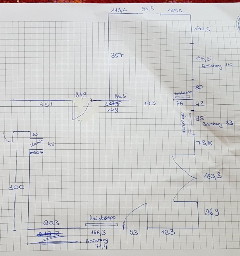 danke für den Plan, völlig ausreichend. Ist zwar nicht wichtig, aber die Einangstür ist sicherlich breiter (inkl Türrahmen, das ist relevant nicht dsas Türblatt).