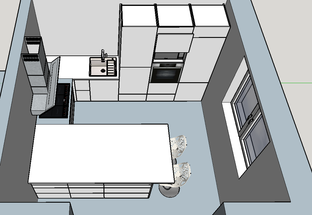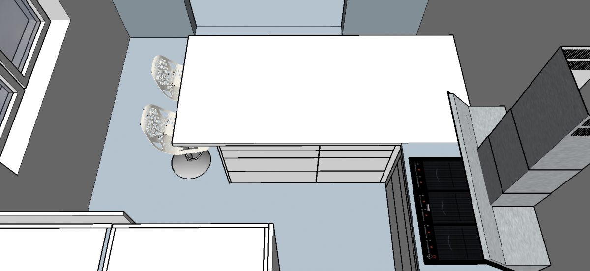 Meine Planung basiert immer auf den IKEA -Möglichkeiten, daher die 100 cm tiefe Insel. Beim Schreiner / Küchenstudio würde ich auch auf 90 cm gehen und mit übertiefen Unterschränken liebäugeln.