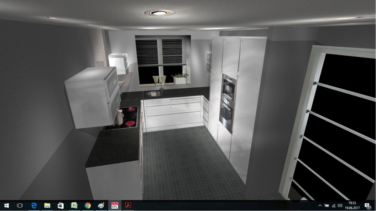wir haben vor kurzem eine Doppelhaushälfte vom Bauträger gekauft. Da demnächst die Elektroplanung fertig sein muss, beschäftigen wir uns seit einigen Tagen mit der Planung unserer neuen Küche um die Anschlüsse richtig einzeichnen zu können.