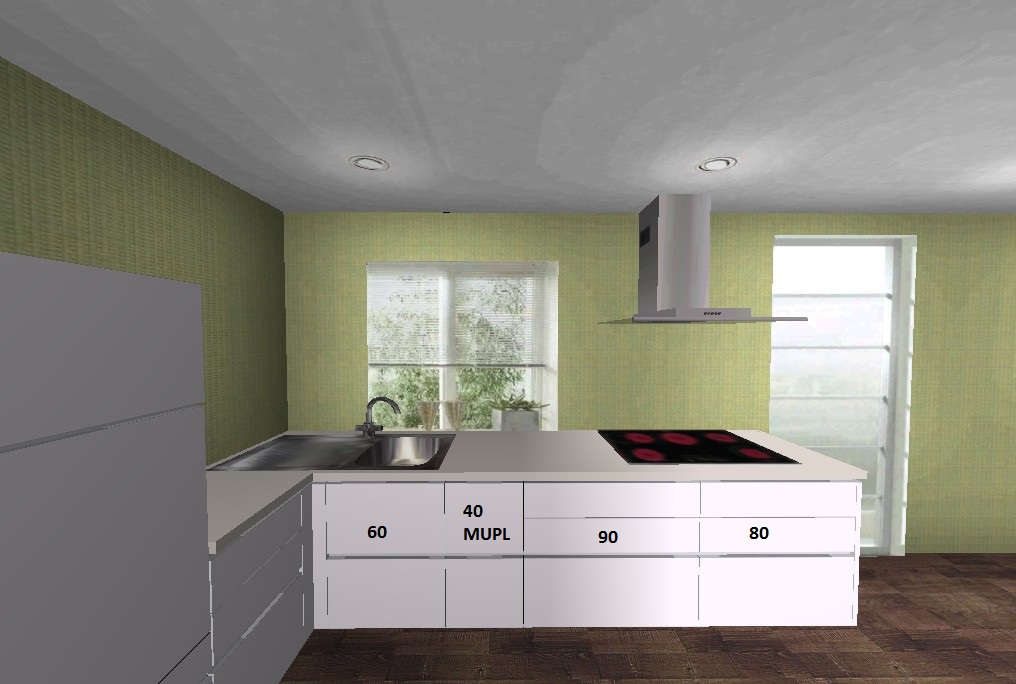 Habe versucht, deine guten Ideen mit einzubauen und das du schon von anfang an ein 80er Kochfeld eingebaut hattest, war 1. nicht zu erkennen (hab es nicht nachgemessen) und 2. hatte ich ja ein 90er als Wunsch angegeben (daher dachte ich, du hast ein solches eingeplant) 3. sind wir beim Durchblättern von E-Gerätekatalogen darauf gekommen, das es auch 80er gibt.