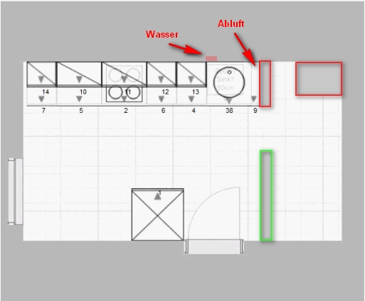 Wo genau ist der Wasseranschluss? Gibts schon ein Abluftloch, und wenn ja, wo? Und soll das eine Ikea -Küche werden, oder ziehst du auch andere Hersteller in Betracht? Fragen über Fragen ... ;-)