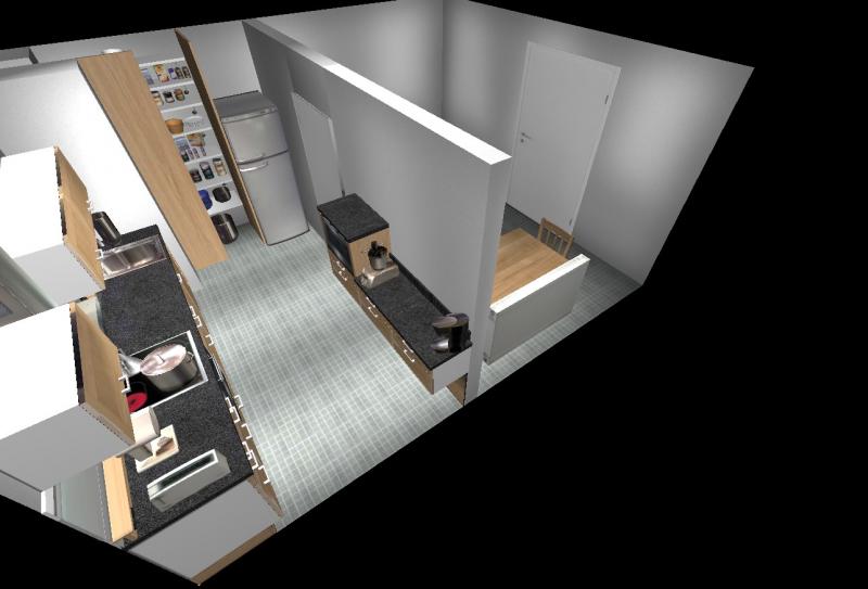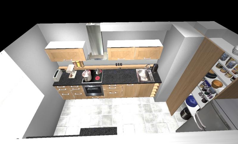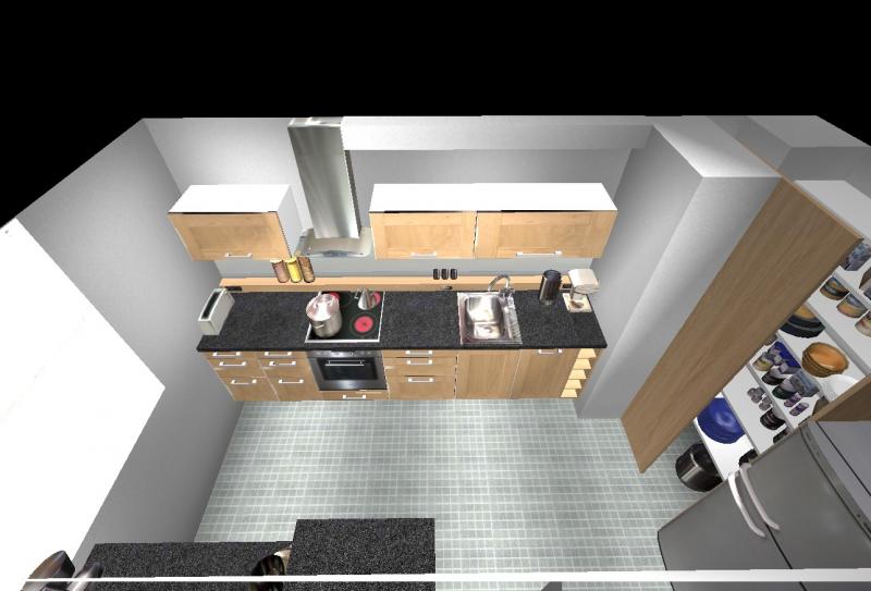 Die Küche hab ich ein wenig vergrößert und die Abstellkammer Wand entfernt um das Kühlschrank dahin zu stellen und eine Schiebetür für die jetzt kleine Abstellkammer kommen noch.