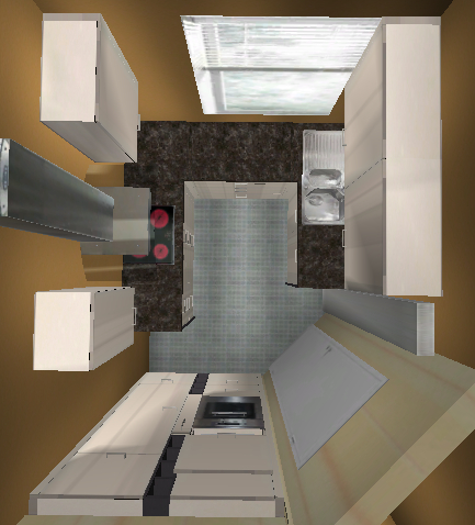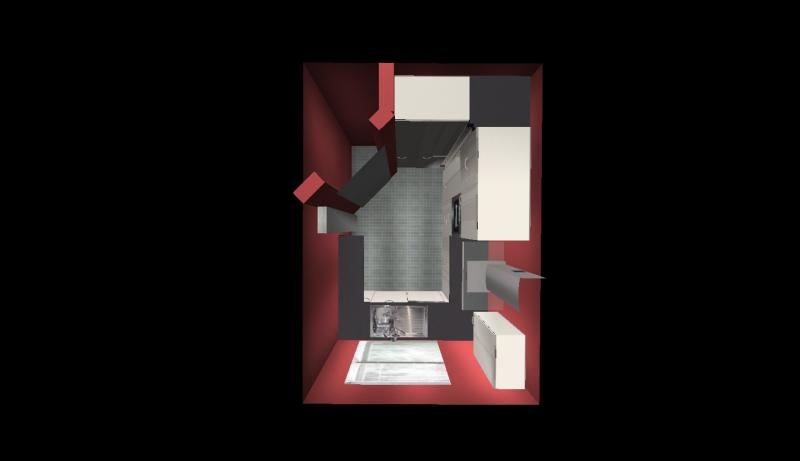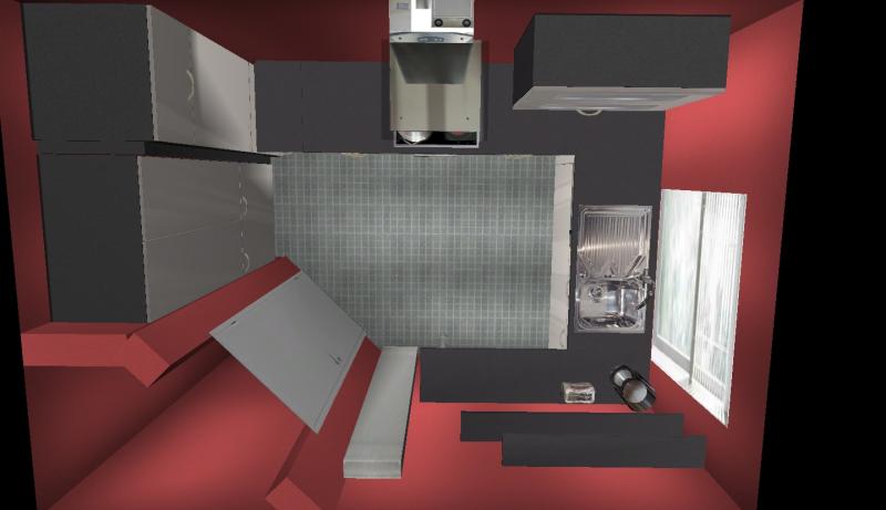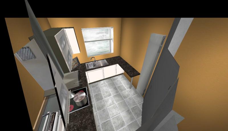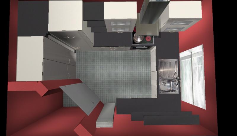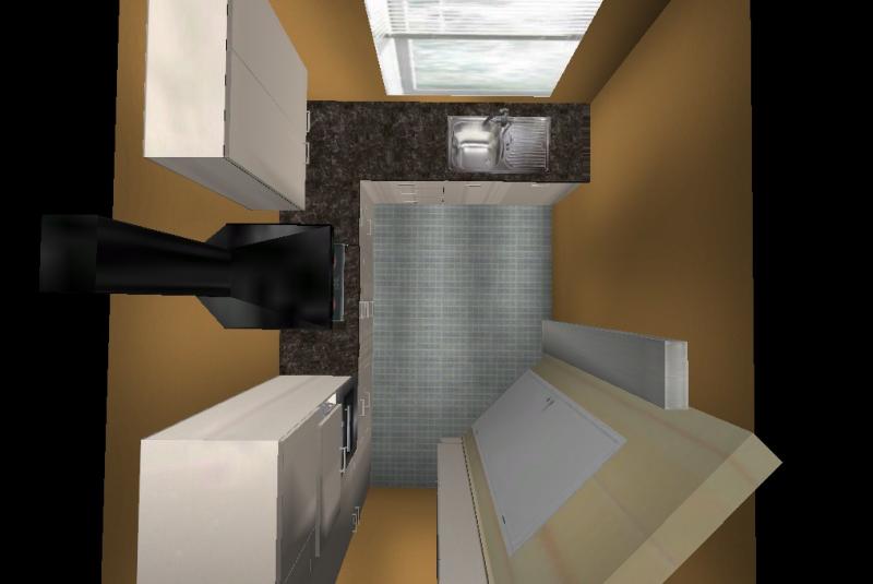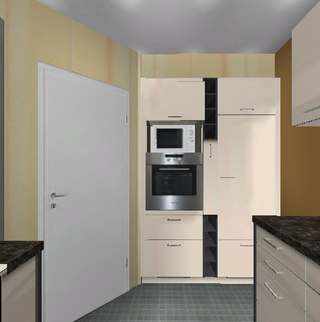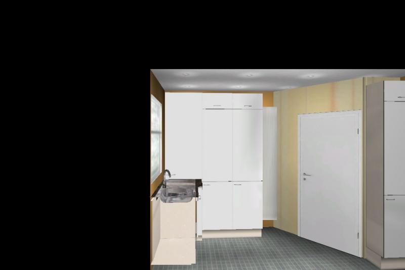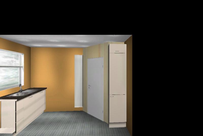 Habe nochmal ein wenig geschoben. Die Idee den Kühlschrank umzusetzen, kam mir gerade. Ich weiß aber nicht ob das was aussieht und praktikabel ist.