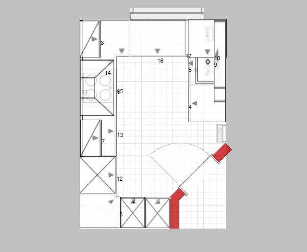 Türblatt würde ich auf jeden Fall gegen dieses Raumspartürblatt tauschen, insbesondere wenn wirklich die beiden Hochschränke so in die Ecke kommen, wie ich es geplant habe. Dann ist die Gefahr bei der Ofenbedienung auch geringer.