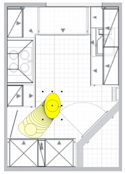 Einfach nur das Rondell weglassen bringt natürlich ein neues Problem, der Herdschrank rutscht nach planoben und der Ofen ist damit rechts wieder etwas durch die Fensterzeile behindert.