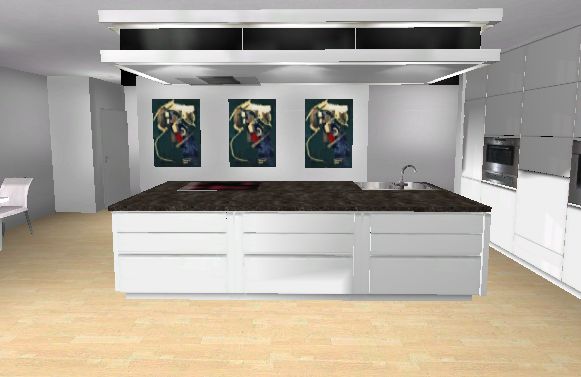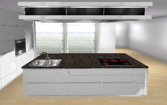 - Kochfeld (oben auf der Insel), Spüle (unten auf der Insel) (siehe Bild) kann aber natürlich verändert werden