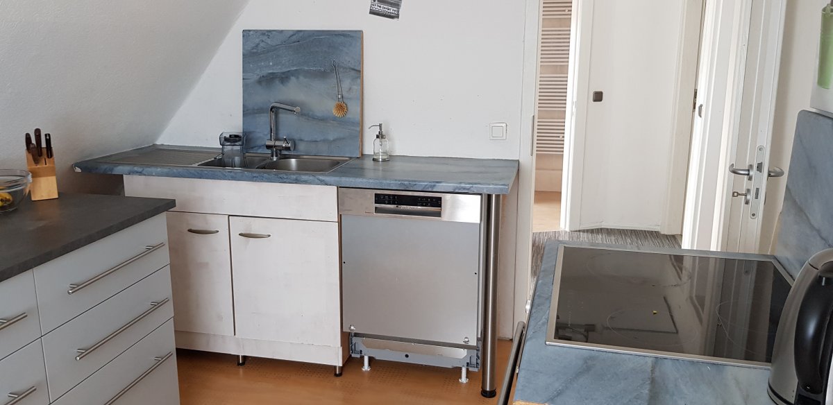 Eine zusammenhängende Arbeitsplatte mit Herd/Backofen, Geschirrspüler und Spüle ist gewünscht.