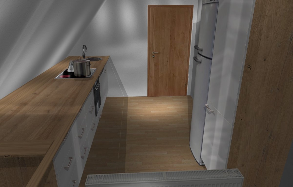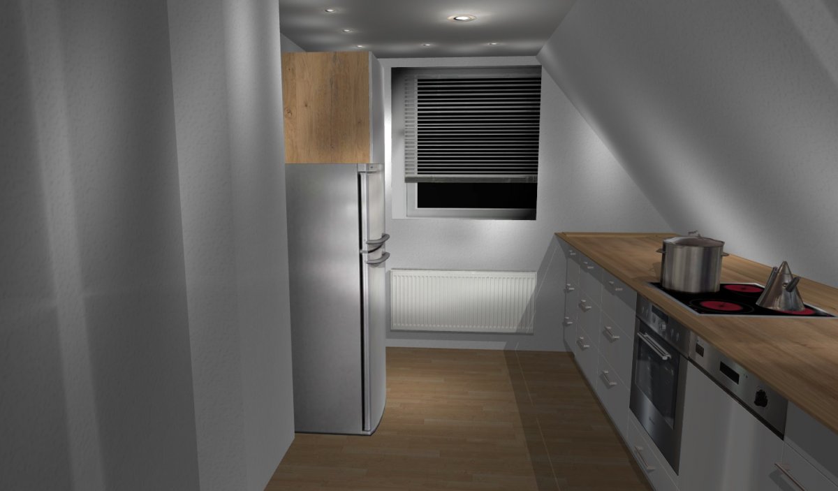 Titel des Themas: Neuplanung 13qm Küche mit 50% Dachschrägen