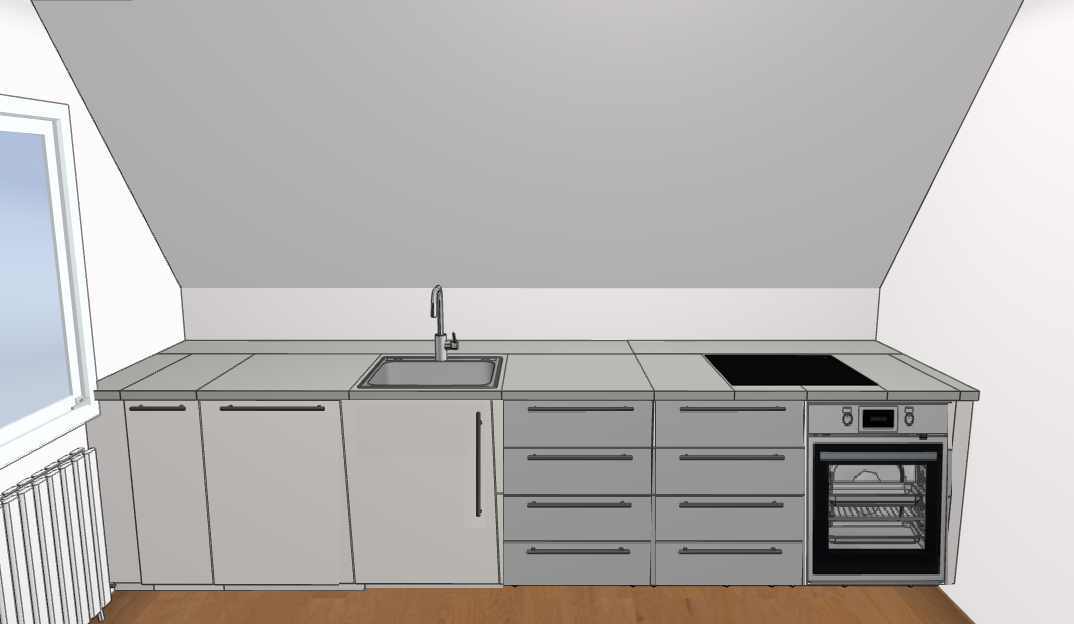 Unbeendet Neuplanung 13qm Küche mit 50% Dachschrägen