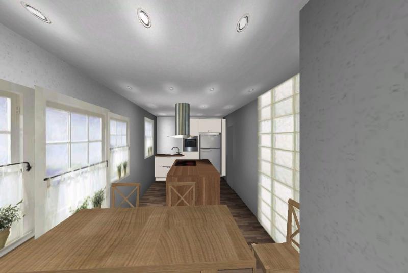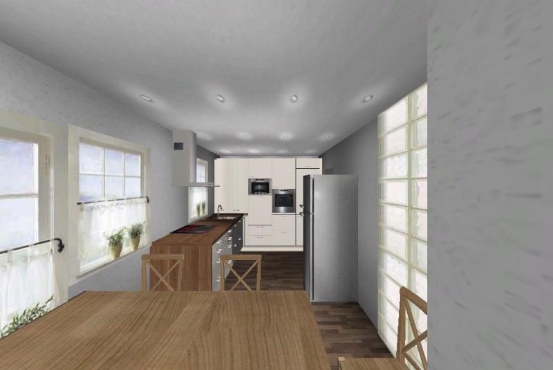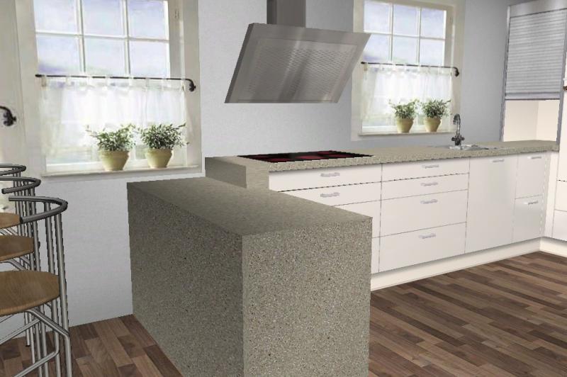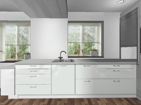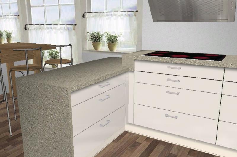 Lediglich befürchte ich, dass die gesamte Arbeitsfläche sehr wenig wird, und deswegen würde ich gerne noch die Idee von Menorca aufgreifen (mit einer kleinen Halbinsel als Platz zum Anrichten usw.) lediglich nicht so weit, dass die Halbinsel vor dem Fenster kommt, da das Fenster ca. 10cm niedriger wäre als die APL. Entweder als Schrank oder als Tisch.