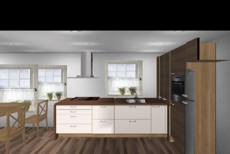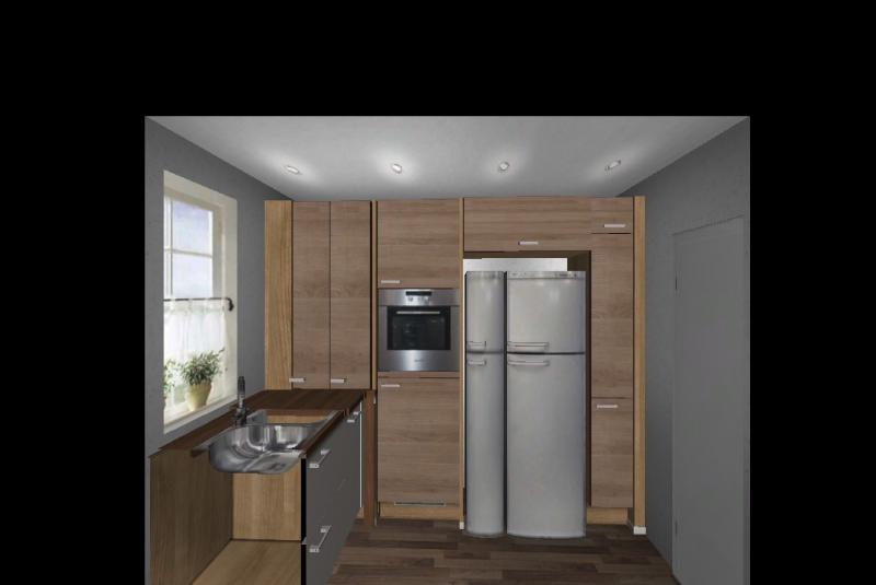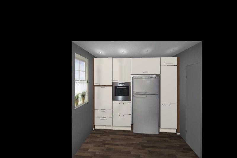 Zur Farbgestaltung, ich selber würde wahrscheinlich den Koprus dann in weiss nehmen, die APL passend zum Laminat und die Hochschrankwand dann auch in der APL Farbe, nicht noch eine dritte Farbe wählen.
