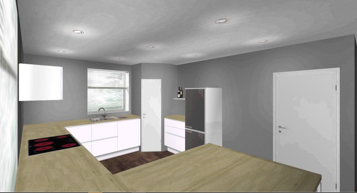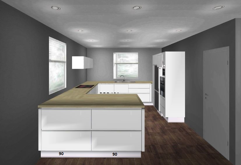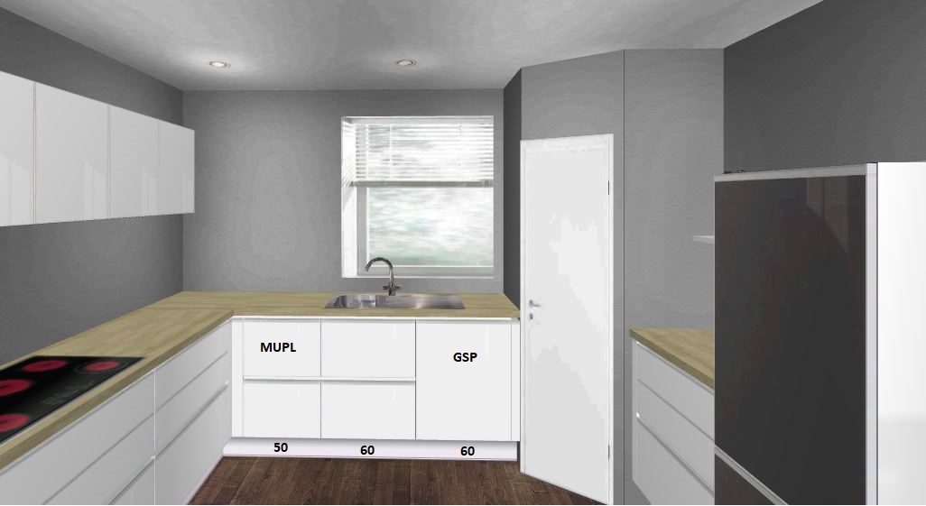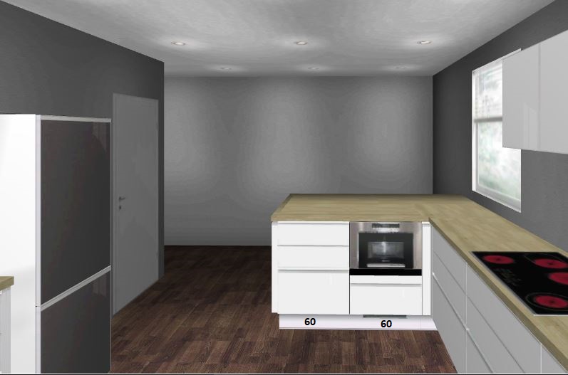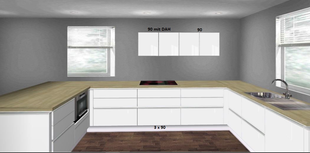 Anbei die aktuelle Planung. Die Ecke, in der die Hochschränke sind, gefällt mir noch nicht so.