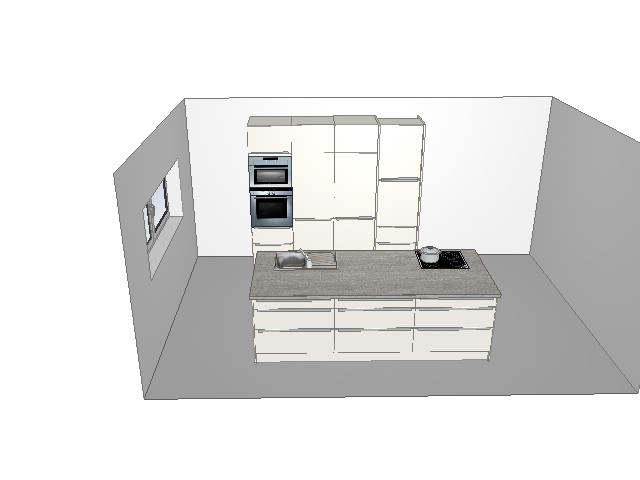 so in etwa nur 5 Hochschränke und die beschriebenen Geräte. die Insel rückt an die Wand mit dem Fenster