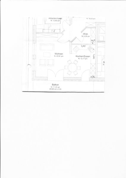 Gewünschte o. vorhandene Tischgröße : Runder Tisch im anschliessenden Wohnbereich