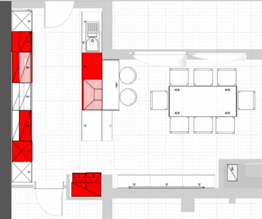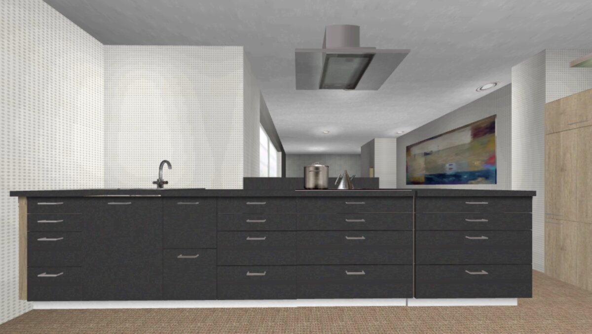 Jetzt müssen wir noch mal genauer an die Aufteilung der Schränke in der Halbinsel gehen. Ich habe eine Planung angehängt mit: 40 cm - 60 cm Spülenschrank (der wird jetzt wahrscheinlich einfach eine Klapptür erhalten und dahinter die Haupttechnik vom Quooker verschwinden) - dann 40 er MUPL - 60 er - 90er mit Kochfeld - 90er Schrank.