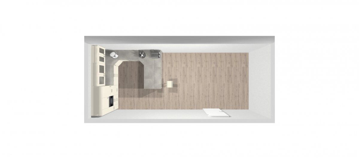 Der Side-by-Side Kühlschrank ist bereits vorhanden und soll mitgenommen werden. (Stellplatz rechts unten beim Vorsprung)