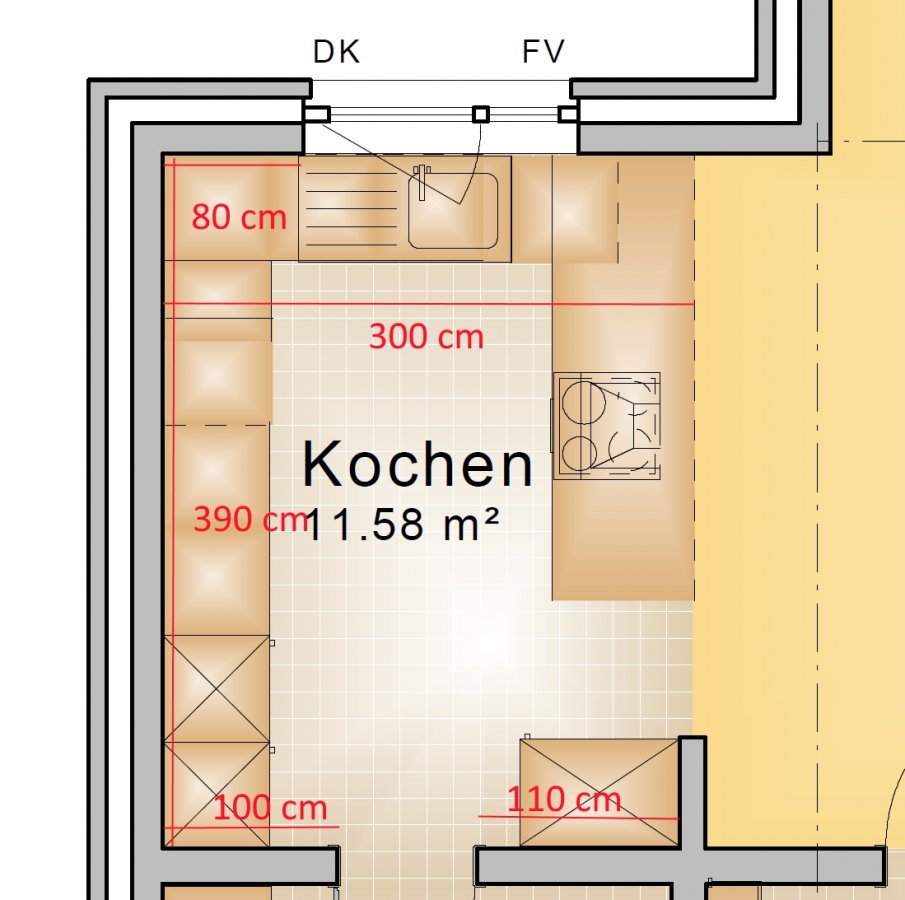 Waren bisher nur in einem Küchenstudio um uns mal ein paar Anregungen zu holen. Daraus resultiert diese selbst gemachte Skizze aus dem Nolteküchenplaner als erste Idee.