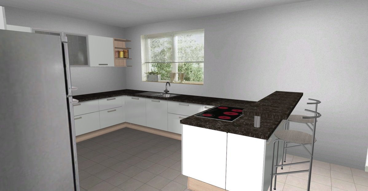 Wir waren bisher in verschiedenen Küchenstudios und haben dort schon einmal grob geplant. Unser Favorit ist momentan ein G-Küche mit einer Theke zum offenen Essbereich. Ohne Unterschrift bekommt man ja aber leider keine wirklichen Unterlagen in die Hand, so dass wir die grobe Umsetzung im ALNO -Planer nachgezeichnet haben (Eckregal als Übergang Seitenschrank-Hochschrank habe ich leider nicht richtig hinbekommen ).