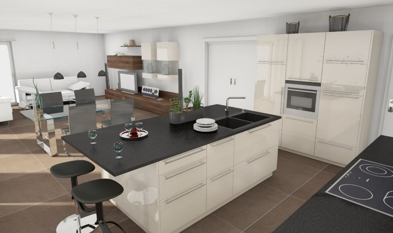 wir planen unsere Küche für unser neues Häuschen. :-) Es soll eine offene, moderne Küche werden mit einer Insel.