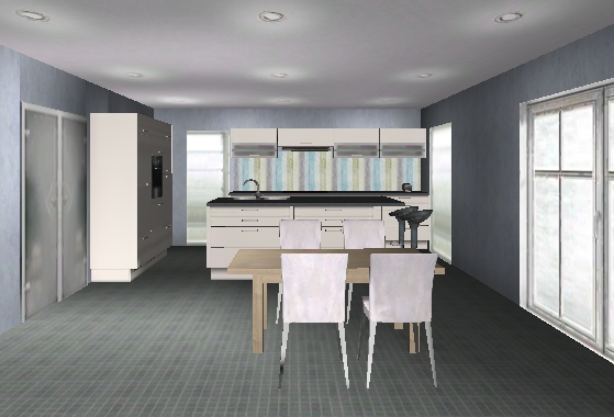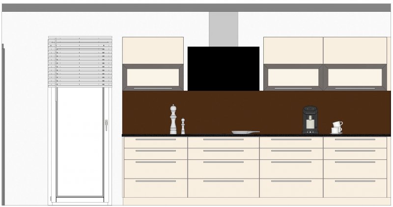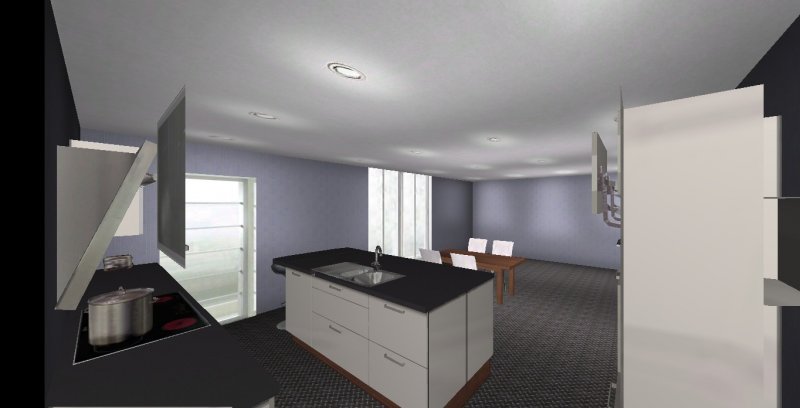 Und den Anschlag der Terrassentür würde ich nicht ändern. Weder in der Planung Kochinsel noch in der Planungs Spüleninsel ist hinter der aufgeschlagenen Terrassentür ein essentiell wichtiges Gerät oder ähnliches. Es ist ein Unterschrank blockiert.