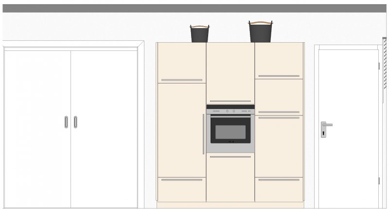 Dier Schränke sind nur 1,75 hoch weil wir keine wuchtige "Küchenwand" haben möchten. Wir hatten sogar an nur 1,55 gedacht aber dann wird schwierig mit einem Kühlschrank inkl. Gefrierfach. Wir denken noch mal drüber nach.
