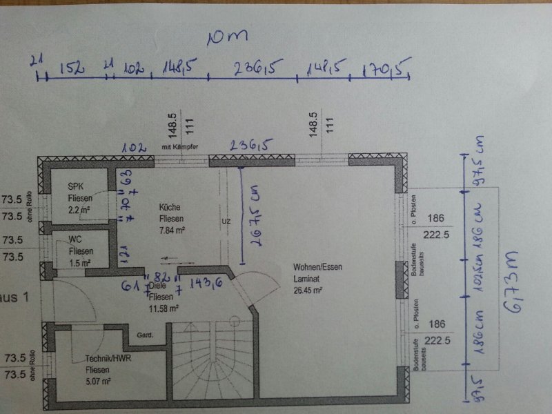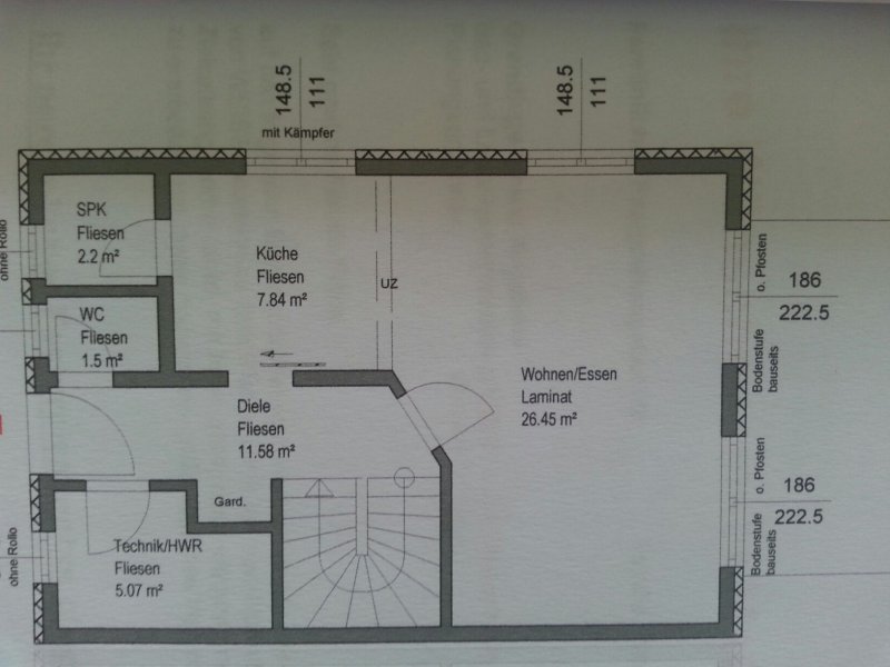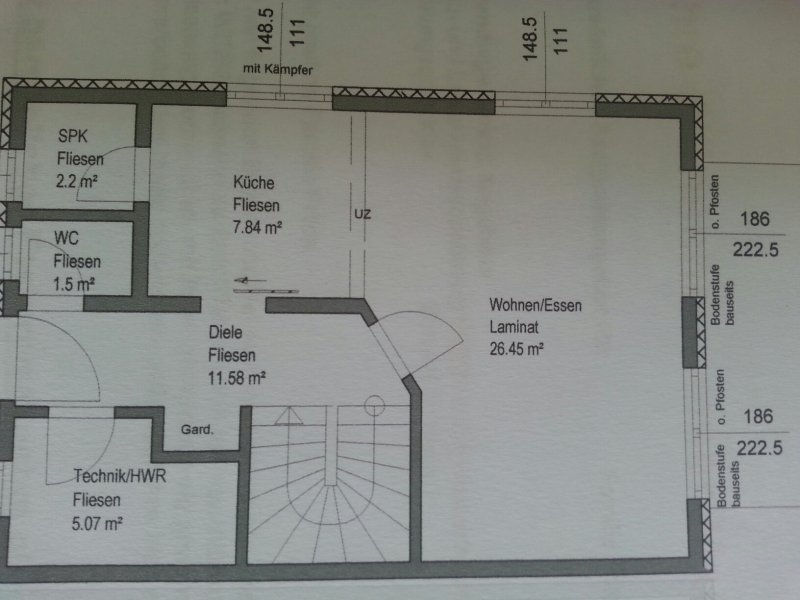 Nachtrag: Das Wandmaß Plan rechts neben der Treppe fehlt. Position und Länge.