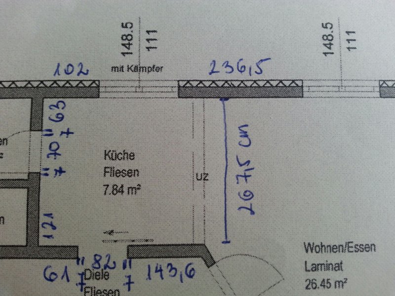 Ich habe den Grundriss der Küche hochgeladen, ich hoffe Ihr könnt uns bei der Planung weiterhelfen.