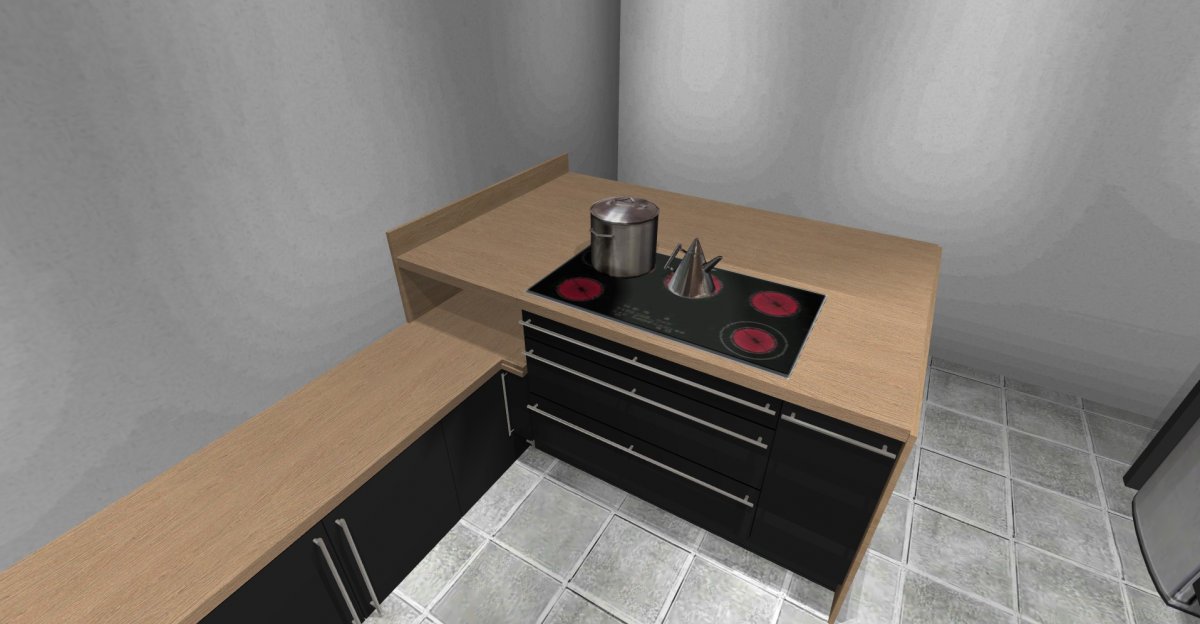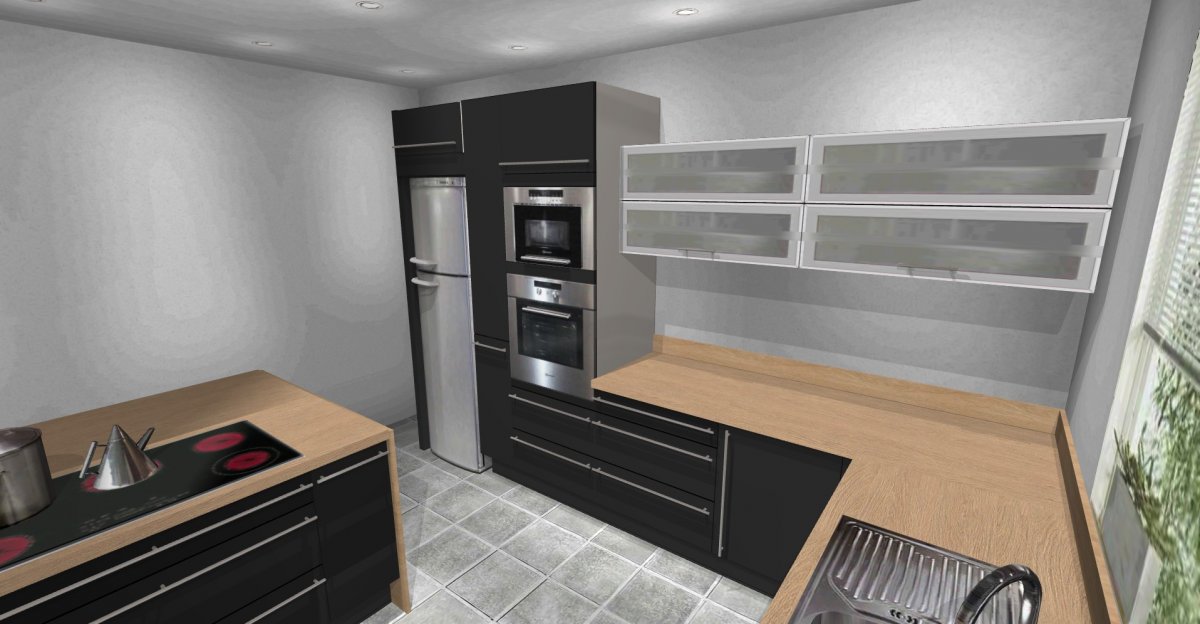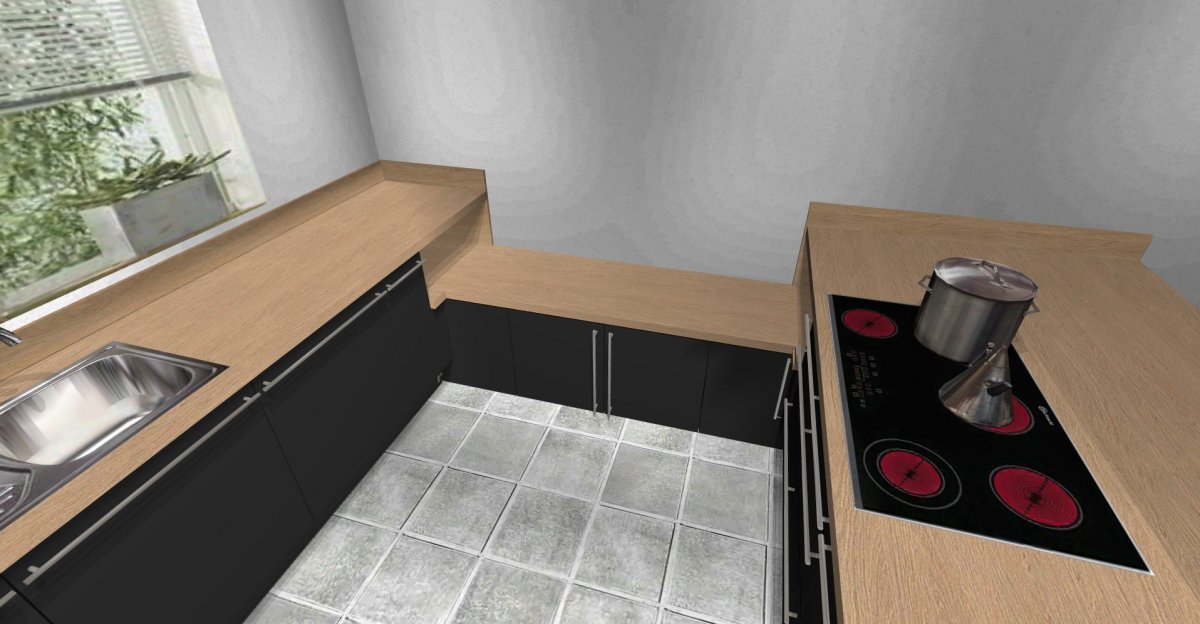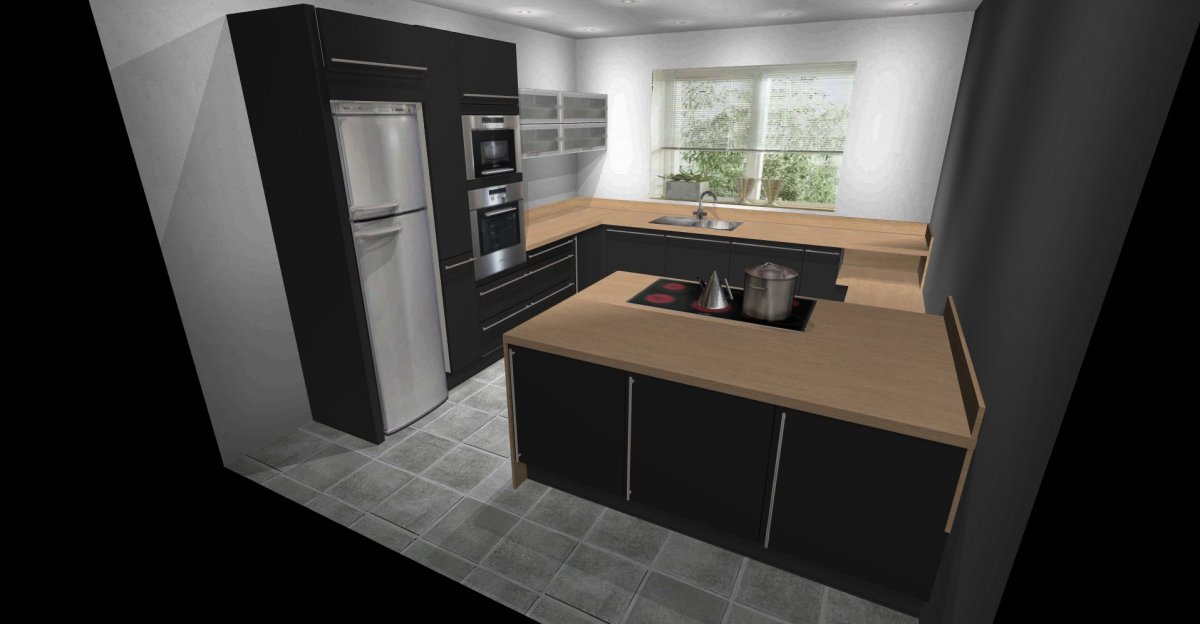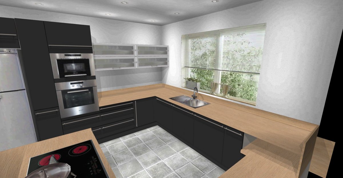 Die Küche soll grifflos (ging im Programm nicht), schwarz matt und offen gestaltet sein. Wir möchten unsere Geräte soweit mitnehmen, lediglich die Mikrowelle und der Geschirrspüler müssen neu angeschafft werden. Über die Dunstabzugshaube sind wir uns noch nicht einig (Bora ? Abluft/Umluft? / Lifthaube?).