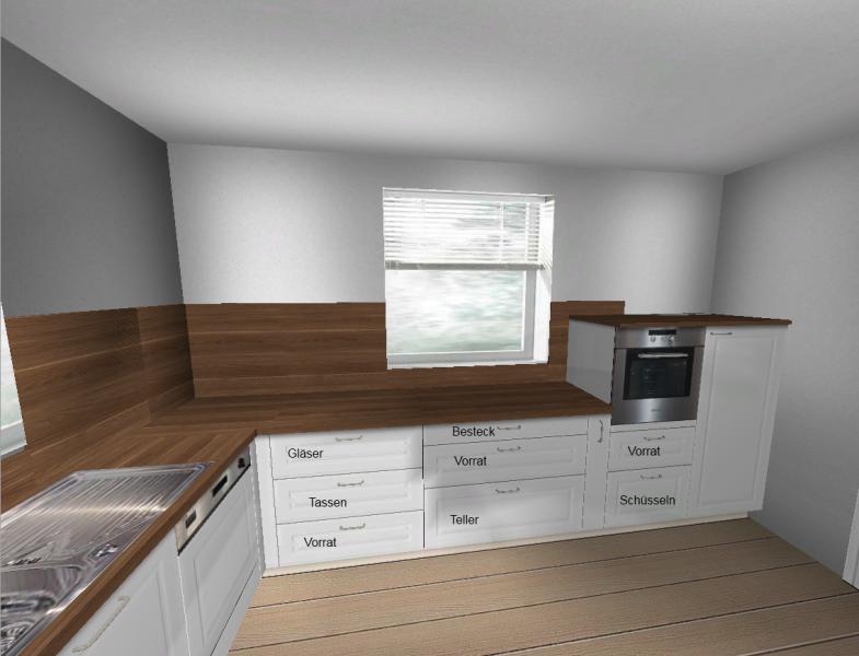 Sooo - der Plan ist erstmal von uns beiden erstmal für gut befunden :2daumenhoch: Stauraum und Arbeitsfläche haben sich gegenüber unserer früheren Küche stark verbessert. Ob wir die Hängeschränke benötigen sind wir noch am überlegen.