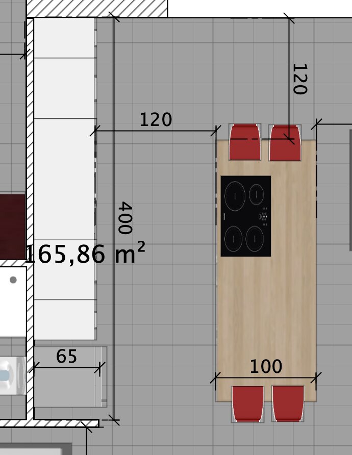 wir planen gerade unser Haus und haben uns das so gedacht, wie du das da hast. Die Insel soll zwar noch frei stehen auf allen 4 Seiten, aber grundlegend geht es um die Fragen: