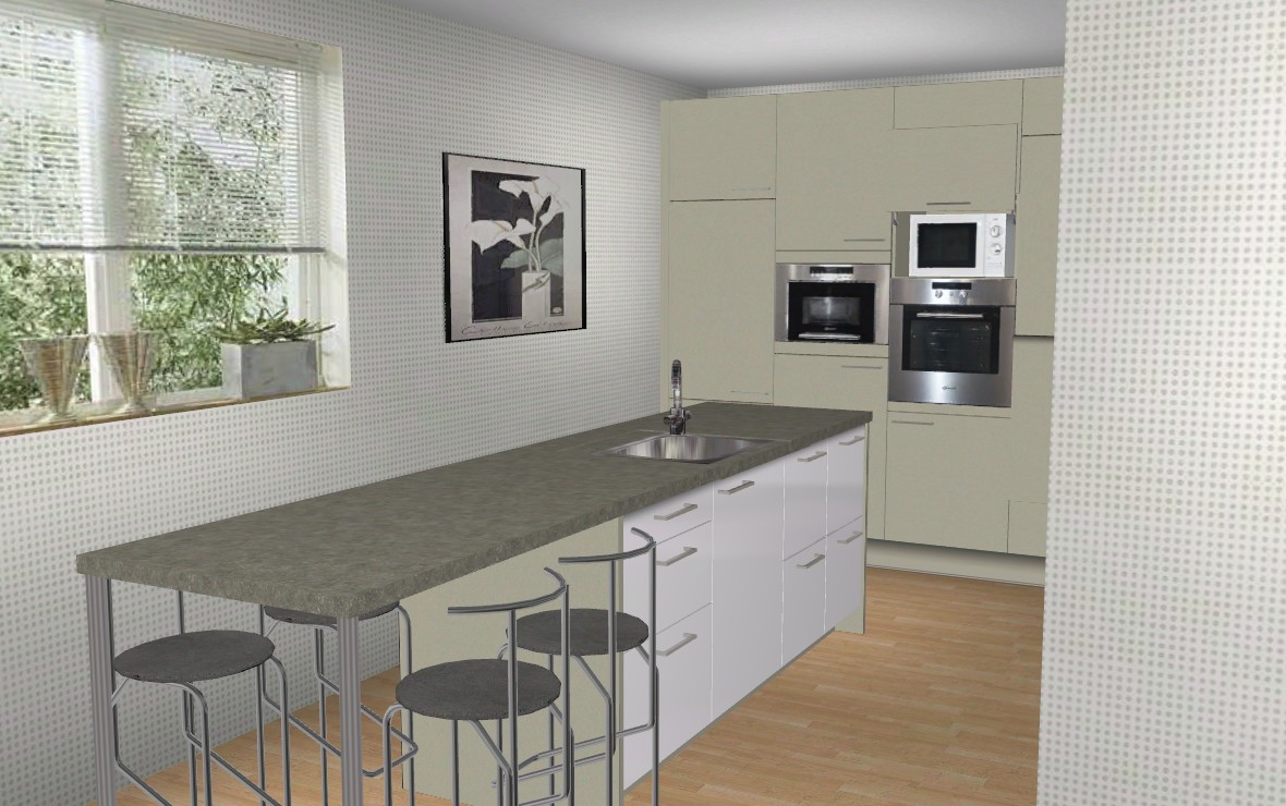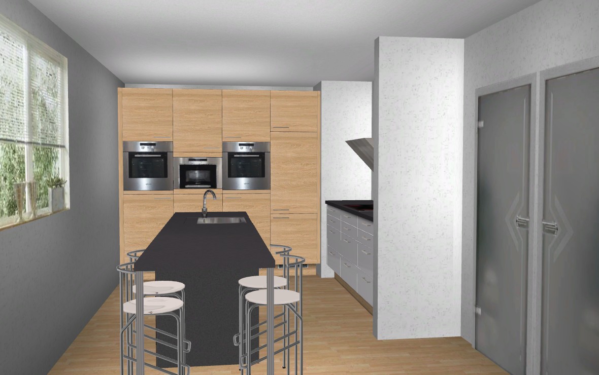 erst einmal tausend Dank für die etlichen Links und die ganze Mühe die Du in die Planung gesteckt hast! Finde es wirklich klasse, dass einem hier so toll geholfen wird. Ich antworte erst jetzt, weil ich eine ganze Zeit gebraucht habe, die ganzen Links und Vorschläge durchzuarbeiten und gestern auch noch einen Termin im Küchenstudio hatte und meine Erfahrungen daraus auch direkt hier einbauen wollte. Leider entstehen momentan bei mir immer mehr Zweifel, wie die zukünftige Küche nun aussehen soll. Bei dem Termin gestern kam zum Beispiel heraus, dass es sehr schwierig bis unmöglich ist, Backofen , Mikrowelle und Kaffeeautomat in meiner Variante in nur 2 Hochschränken ansehnlich anzuordnen. Deswegen hat deine Planung allein schon deswegen Charme, weil nun 4 Hochschränke vor Kopf möglich wären wo alles gut unterkommen könnte. Das mit der Kochnische und dann vor Kopf die Hochschränke gefällt mir also sehr gut. Was mir an deiner Variante ein wenig Kopfzerbrechen beschert sind 2 Dinge. Zum einen weiß ich nicht, ob mir die Arbeitsfläche ausreicht. Auf der Insel ist ja das Waschbecken und dort, wo man dann Platz hätte stehen ja dann Stühle. Vielleicht kann man die Insel auch an der Wand vor dem Fenster positionieren, so dass sie am Fenster in den Raum ragt. Ich hoffe du verstehst mich :-) Weitere Arbeitsflächen wären dann ja nur rechts und links vom Herd. Zum anderen habe ich mich ehrlich gesagt auch schon sehr auf den amerikanischen Kühlschrank und vor allem auf den Eisspender gefreut. Der war allerdings gestern auch Thema im Küchenstudio und es hieß, dass er schwer schön zu integrieren ist weil in meiner Variante der Sprung von den hohen Hochschränken zum 1,80 hohen Kühlschrank dann zu groß wäre und das er ja tiefer ist und dann vorstehen würde. Kann man das vielleicht lösen in dem man ihn in einen Hochschrank einbaut (quasi einen Rahmen) und die Hochschränke von der Wand weggerückt werden? Hast du vielleicht einen Link, wo das so gelöst wurde? Ein integrierte Kühlschrank würde vom Design wohl definitiv besser aussehen aber ich will gefühlt seit meiner Kindheit schon son Ding haben :-)