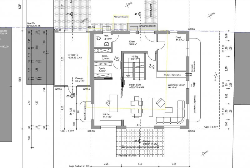 - Wir bauen neu, d.h. Strom kann frei verlegt werden, nur Wasser müsste an der Westwand bleiben.
