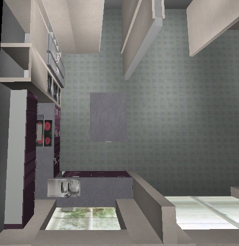 - Am anderen Ende der Küche (an der Südwand) befindet sich ein halbhoher Schrank, neben dem Fenster