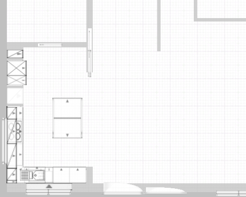 - Wir stellen uns eine Arbeitsinsel (oder Halbinsel) vor. Das Kochfeld soll an die Wand und braucht Abluft