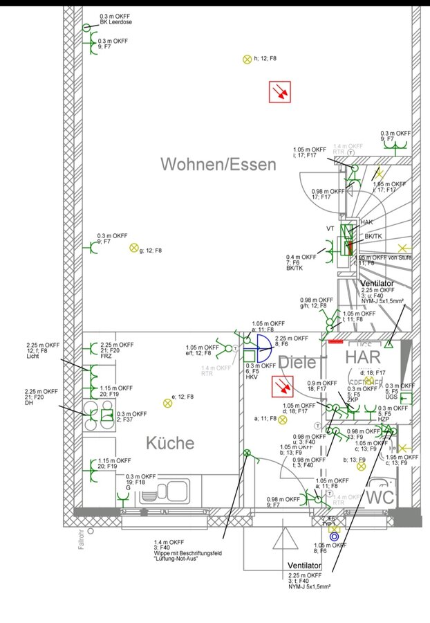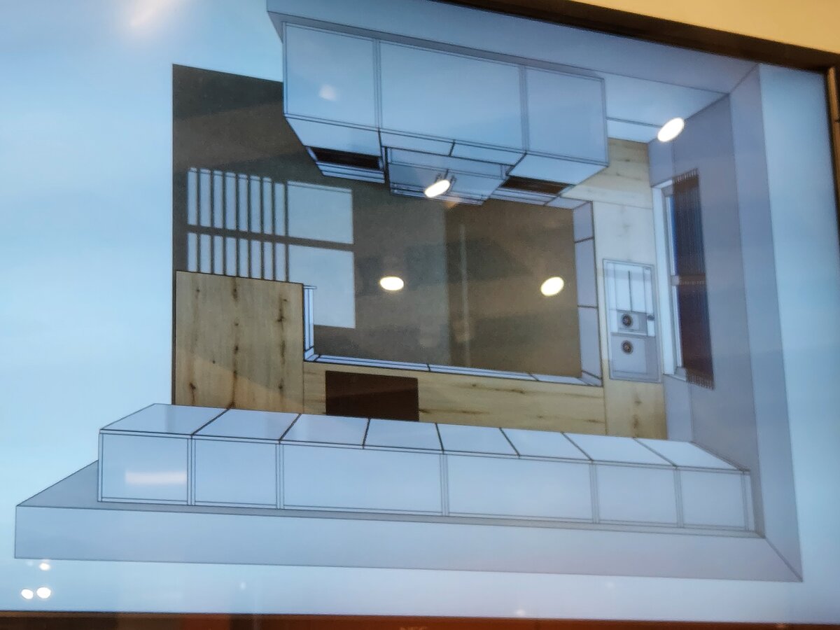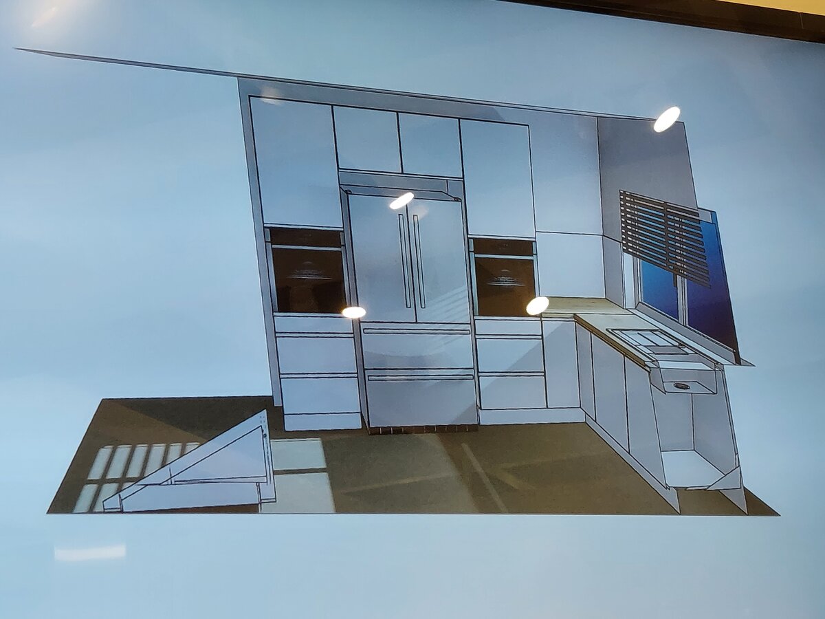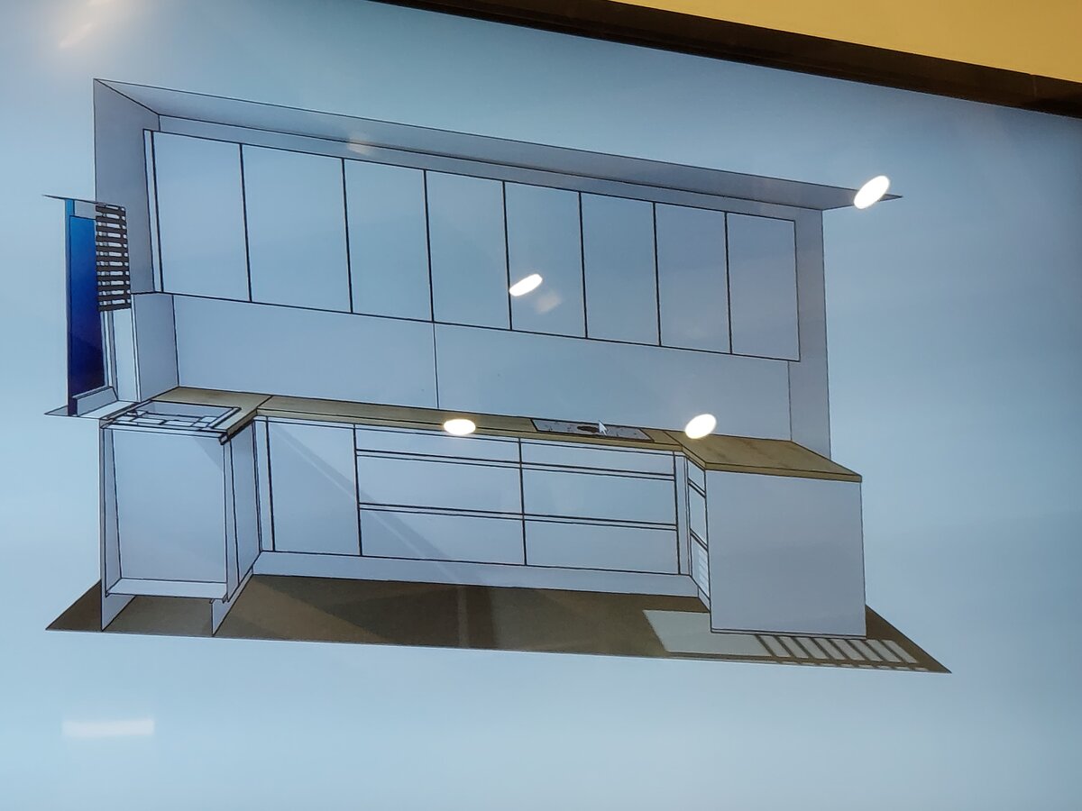 Die Halbinsel auf den Fotos fällt weg. Weil wir die Spalte über dem Kühlschrank nicht weggeplant bekommen: Statt eines SidebySide sollen es nun auf der linken Seite der Gipswand 2 Einbaukühlschränke (NoFrost und leise) mit je 2 Türen (unten Gefrierfächer) sein (bezahlbaren Doppelkühlschrank habe ich nicht gefunden). Rechts daneben 2 Hochschränke mit je 1 Ofen (1 Pyrolyse und einen mit Dampfgarfunktion oder -Unterstützung).