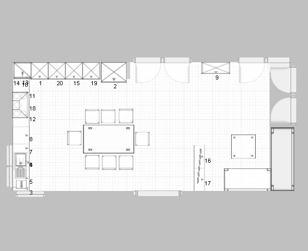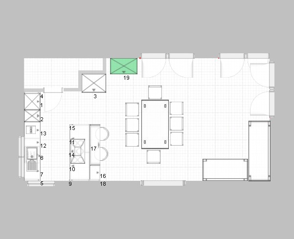 Ich habe versucht damit mal unsere Küche, mit Euren Vorschlägen, nachzubauen. Leider sind noch ein paar Schönheitsfehler drin...aber das wesentliche sollte man erkennen.